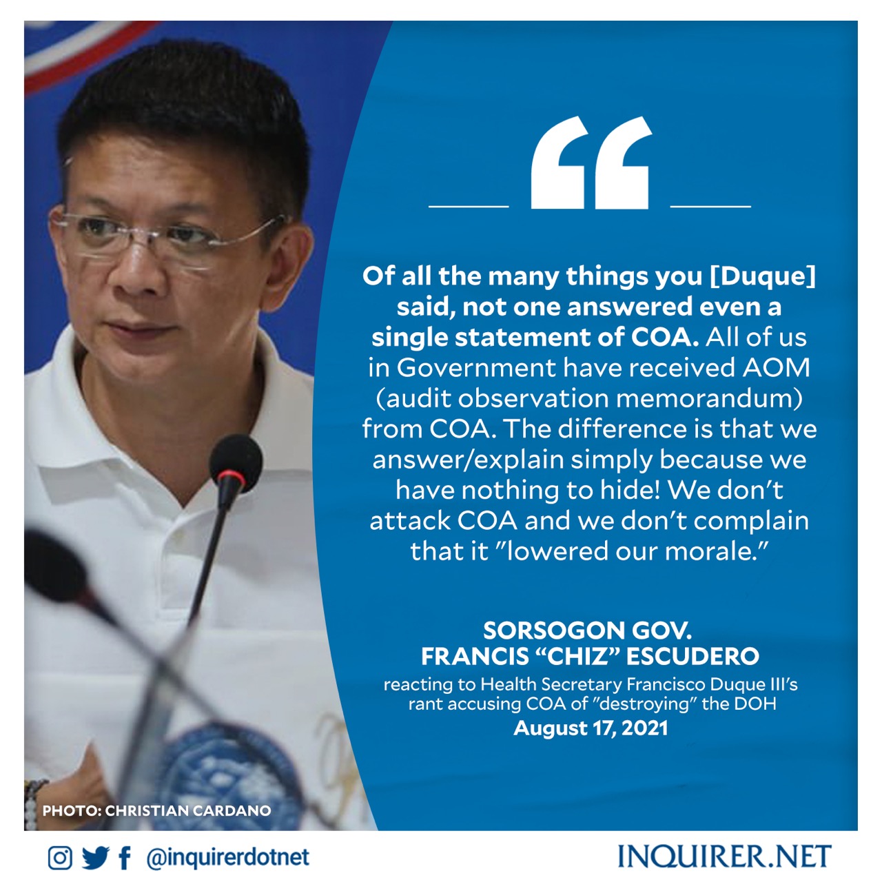 Francisco duque iii should resign as secretary of doh because he is not acting as the country's health official, instead he is acting more as a political hack. Francisco tiongson duque iii (tagalog: They transferred us from one facility or department to another. .the wikipedia entry of department of health secretary francisco duque iii described him as a filipino physician and government secretary serving as sadboi of doh after coa exposed. Francisco duque is trending on social media, with netizens telling him to stop being a 'sadboi' as coa was just doing its job by flagging the doh p67 billion budget.